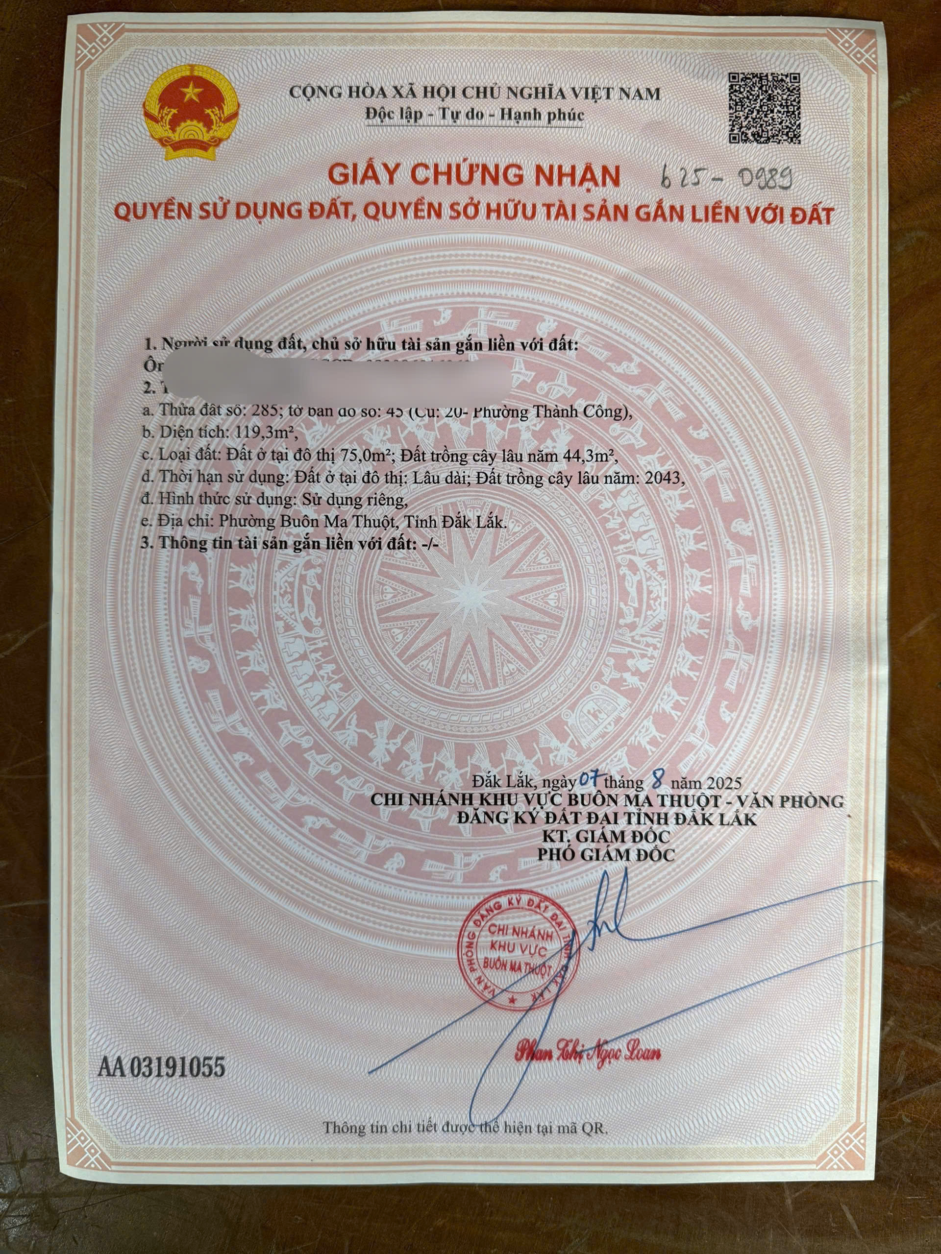 Địa chỉ tài sản: Đường Nguyễn Trung Trực phường Thành Công tỉnh Đắk Lắk