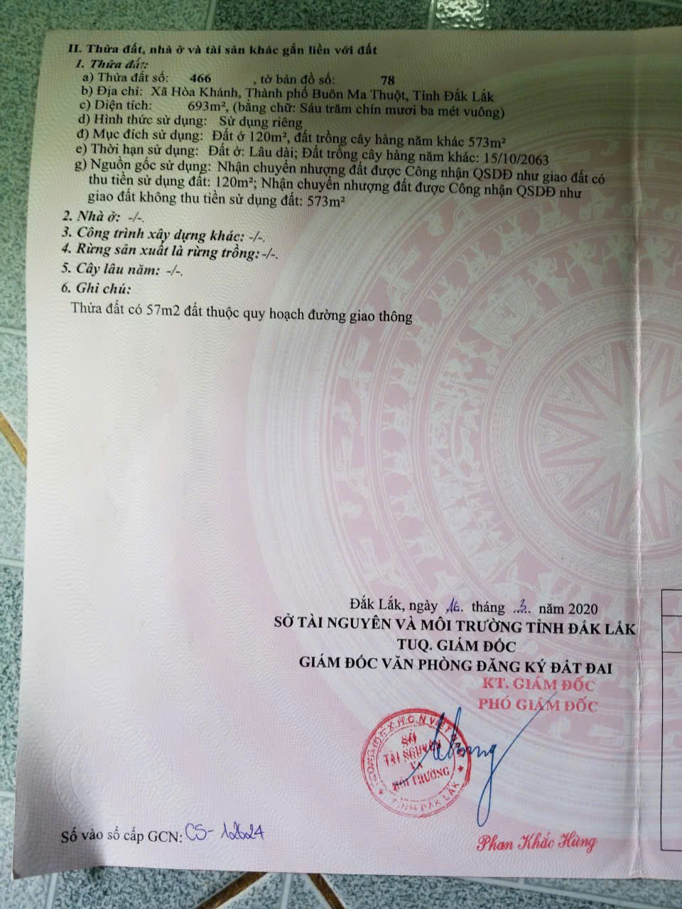 * Thổ cư: 120m²