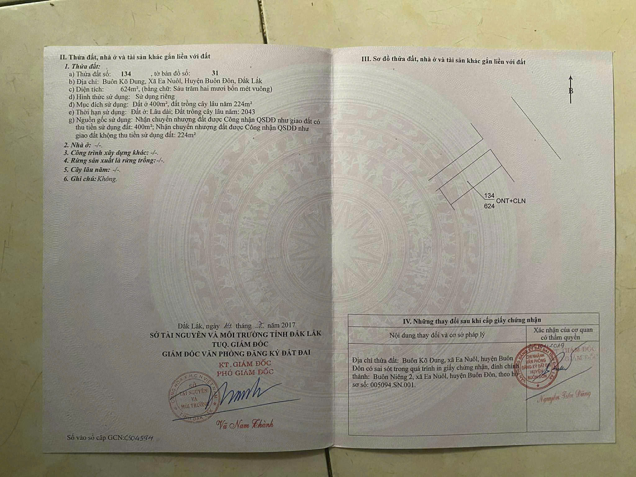 * Vị trí: Mặt tiền Tỉnh lộ 1, Buôn Niêng – xã Ea Nuôl