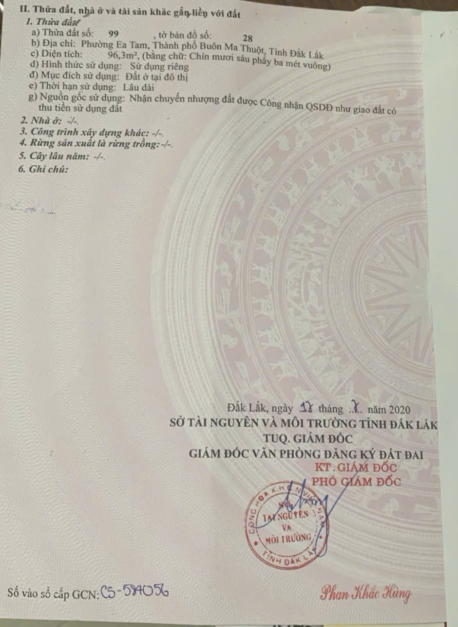 Địa chỉ tài sản: Đường Lê Duẩn phường Ea Tam BMT