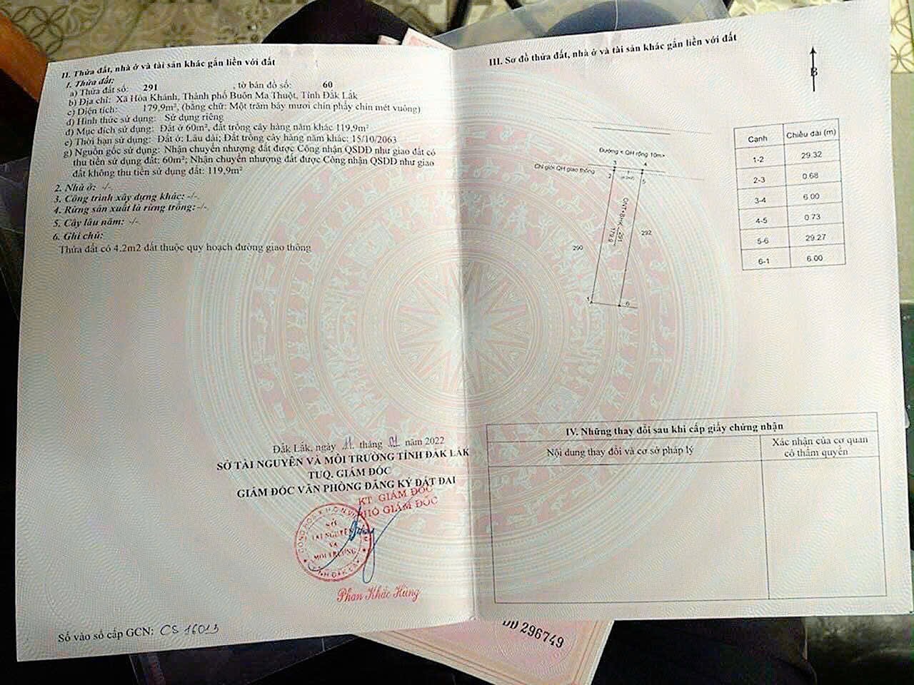 Địa chỉ tài sản: Đường Tố Hữu buôn Kbu xã Hoà Khánh tỉnh Đắk Lắk
