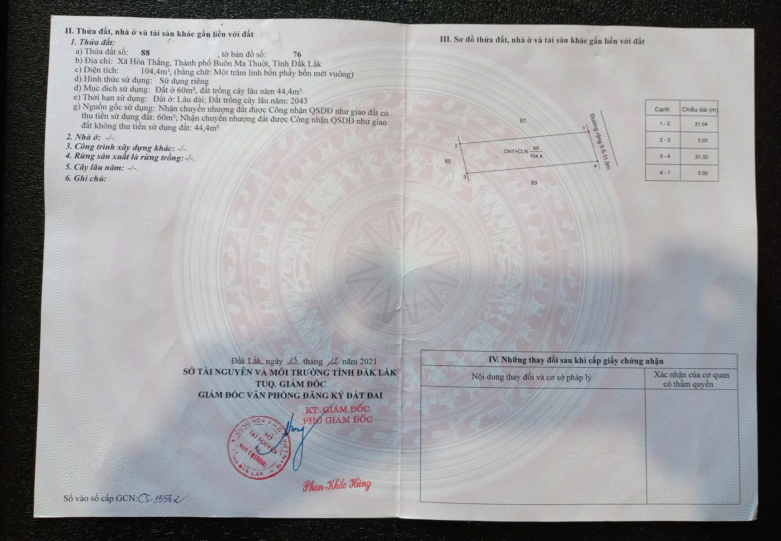 * Thổ cư: 60m²