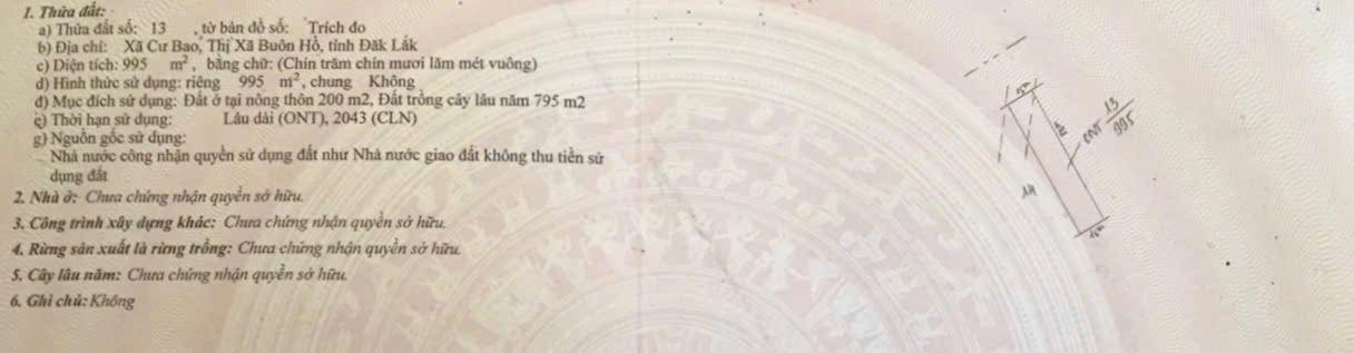 Địa chỉ tài sản: Đường Quốc Lộ 14 phường Cư Bao thị xã Buôn Hồ