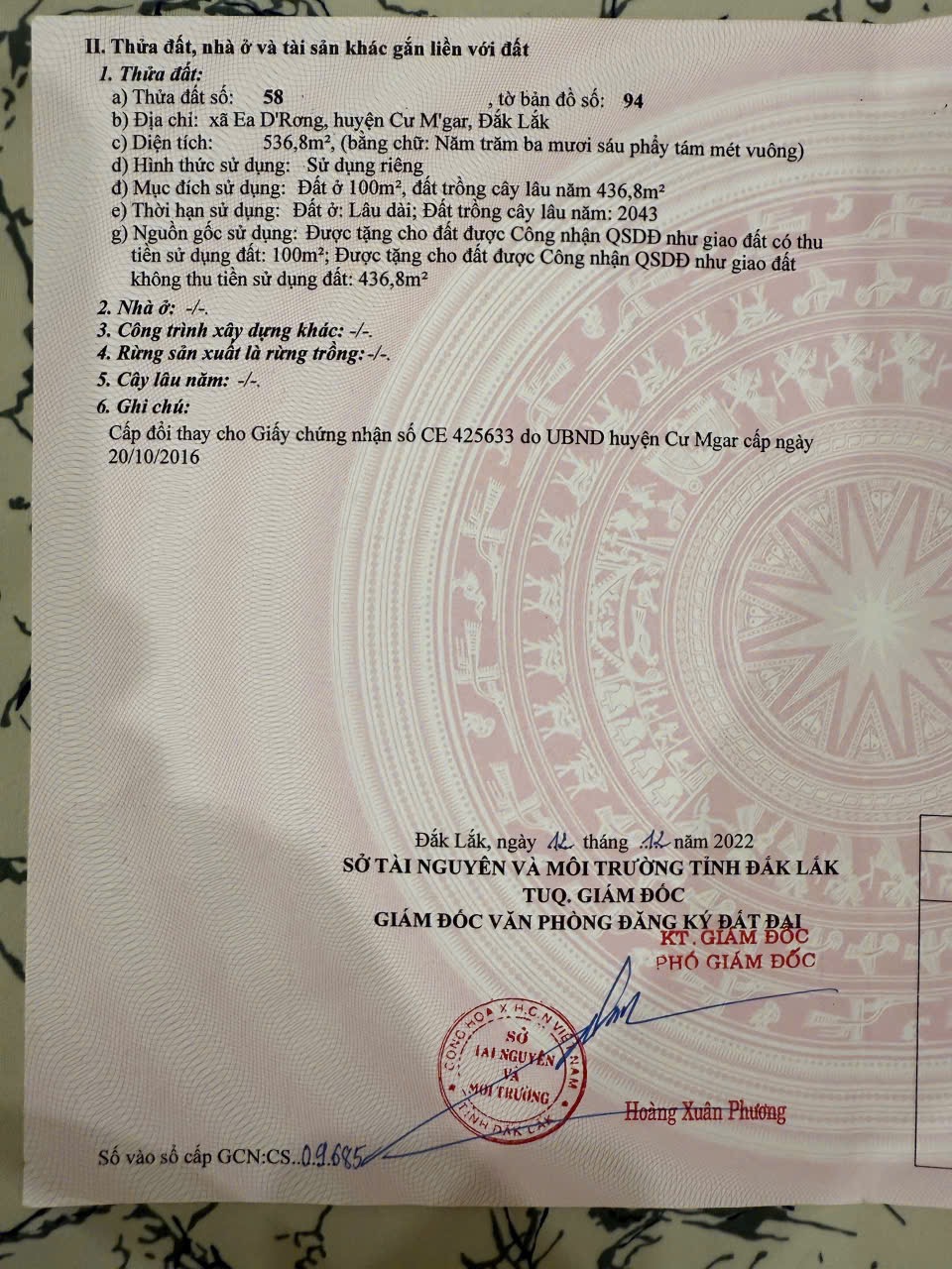 Địa chỉ tài sản: Buôn Tah xã Ea Drong huyện Cư Mgar