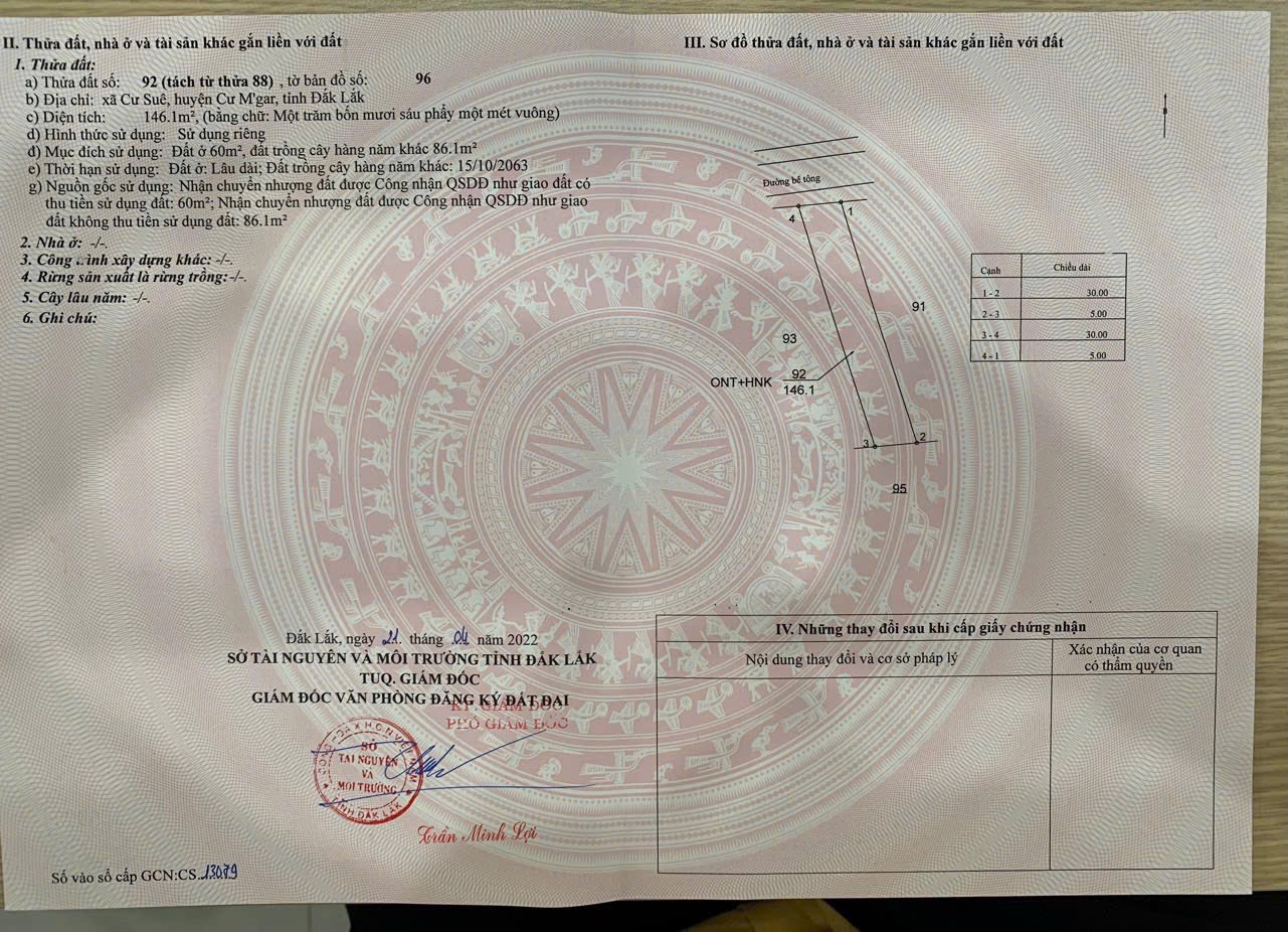 Địa chỉ tài sản: Tỉnh Lộ 8 dốc buôn Rư, Cư Suê huyện Cư Mgar